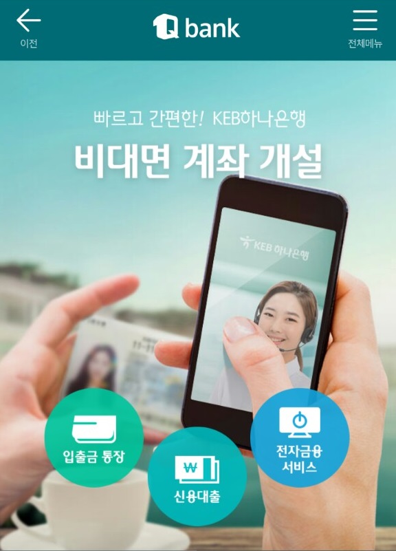 KEB하나은행 역시 스마트폰 애플리케이션(앱) 1Q뱅크(모바일뱅킹)을 다운로드 받아 통장을 만들 수 있지만 평일 오전 9시~오후 5시30분까지만 이 서비스를 이용할 수 있다.
