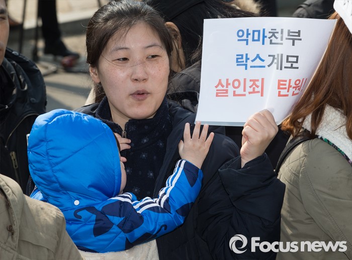 (평택=포커스뉴스) 학대와 무관심 속에 살해당한 신원영 군의 계모 김모 씨와 친부 신모 씨가 14일 오후 경기도 평택시 포승읍 자택에 도착, 기다리던 시민단체 회원들과 시민들이 살인죄 적용을 촉구하는 구호를 외치고 있다.