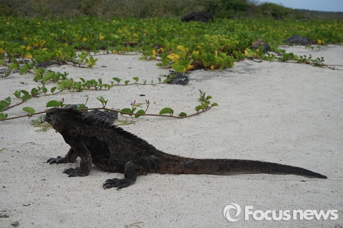 (갈라파고스=포커스뉴스) 갈라파고스 제도에서만 생존하는 바다이구아나가 해안가를 산책하고 있다. 도마뱀 중 유일하게 바다에서 위장하고, 생존할 수 있는 능력을 가진 바다 파충류이다 <사진제공=전수경>