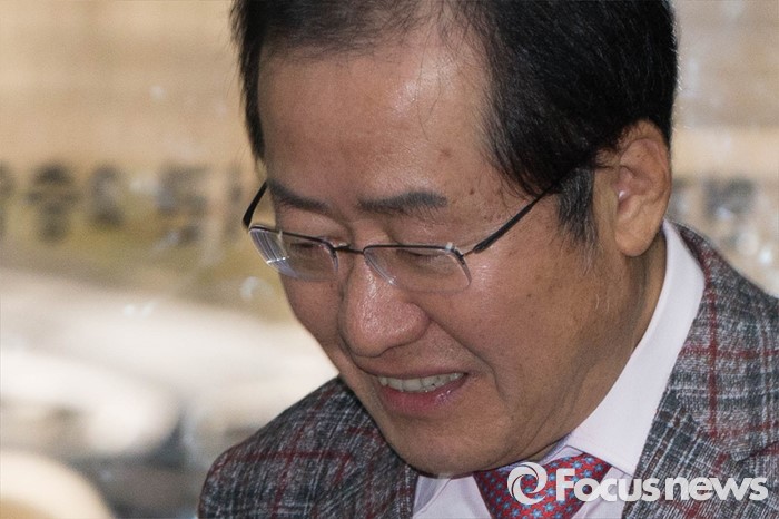 (서울=포커스뉴스) 18일 오전 서울 서초구 서울중앙지방법원에서 고(故) 성완종 전 경남기업 회장으로부터 불법 정치자금을 받은 혐의로 기소된 홍준표(62) 경남도지사가 4차 공판에 출석하고 있다.