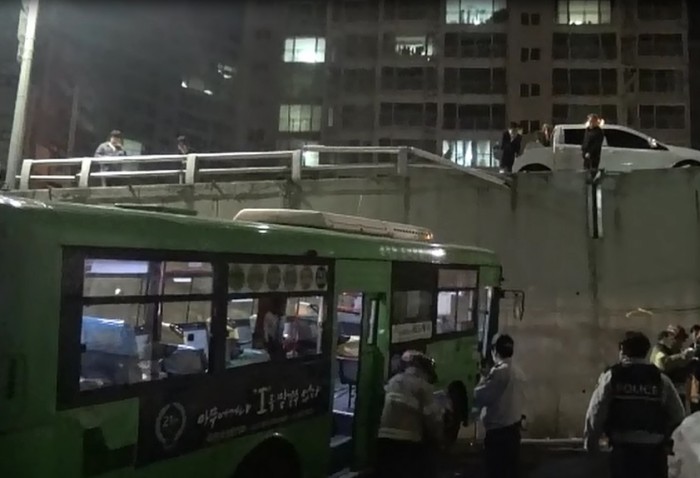 (서울=포커스뉴스) 4일 오후 11시 10분쯤 서울 마포구 성산고가도로에서 마을버스가 5m 아래로 추락해 버스에 타고 있던 운전기사, 승객 등 2명이 다쳤다.