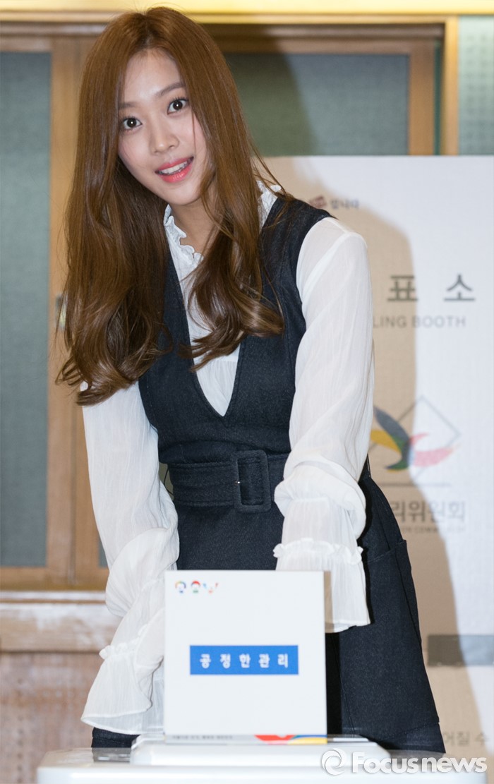 (서울=포커스뉴스) 20대 총선을 닷새 앞두고 사전투표가 이틀동안 실시되는 8일 오후 서울 강남구 청담동주민센터에 마련된 사전투표소에서 배우 조보아가 투표를 하고 있다.