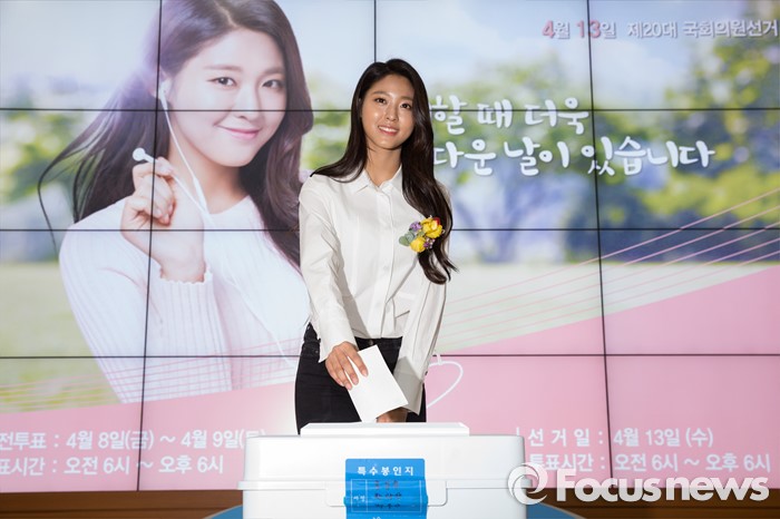중앙선거관리위원회로부터 아름다운 선거 홍보대사로 위촉된 설현은 8일 오후 4.13 총선 사전투표장인 서울 강남구 청담동 주민 센터를 찾아 유권자로서의 한 표를 행사했다.
