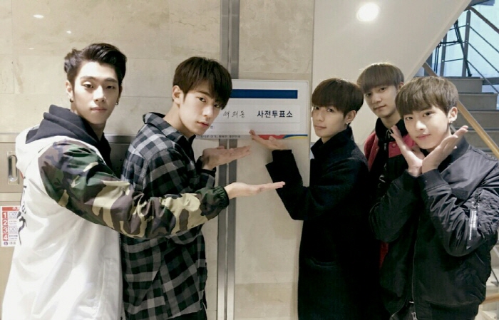 소속사 관계자는 “사전 투표 첫 날이었던 8일 오전 6시30분경 음악 방송 리허설을 앞두고 서울 영등포구 여의동 주민센터에서 멤버 모두 투표에 참여했다”고 밝혔다.