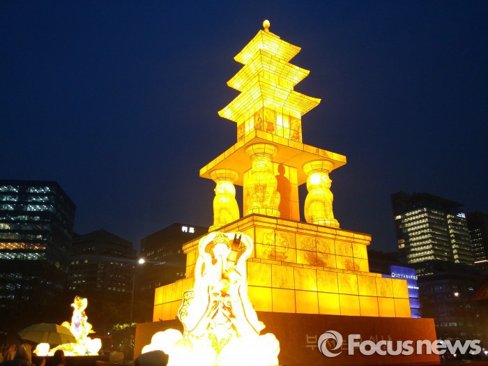 또 광화문 광장 점등식과 동시에 종로 조계사와 청계천 광장 등 서울 지역 전역에서도 5만여개의 가로연등이 일제히 불을 밝혀 서울 밤하늘을 연등의 빛으로 수 놓았다.