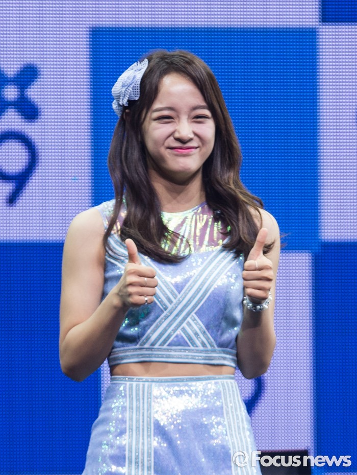 (서울=포커스뉴스) 28일 오후 서울 광진구 예스24 라이브홀에서 열린 걸그룹 구구단의 데뷔 쇼케이스에 참여한 멤버 세정이 포토타임을 갖고 있다.