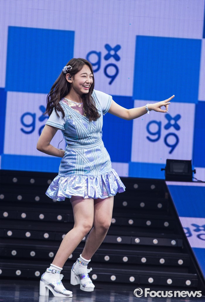 (서울=포커스뉴스) 28일 오후 서울 광진구 예스24 라이브홀에서 열린 걸그룹 구구단의 데뷔 쇼케이스에 참여한 멤버 미나가 포토타임을 갖고 있다.