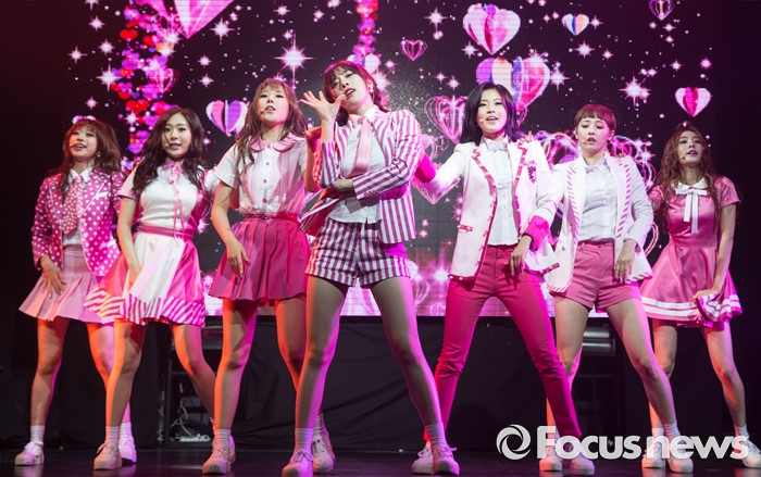 (서울=포커스뉴스) 29일 오전 서울 마포구 예스24 무브홀에서 열린 걸그룹 소나무의 미니앨범 '넘나 좋은 것' 쇼케이스에 참여한 멤버들이 신곡 '넘나 좋은 것'의 무대를 선보이고 있다.
