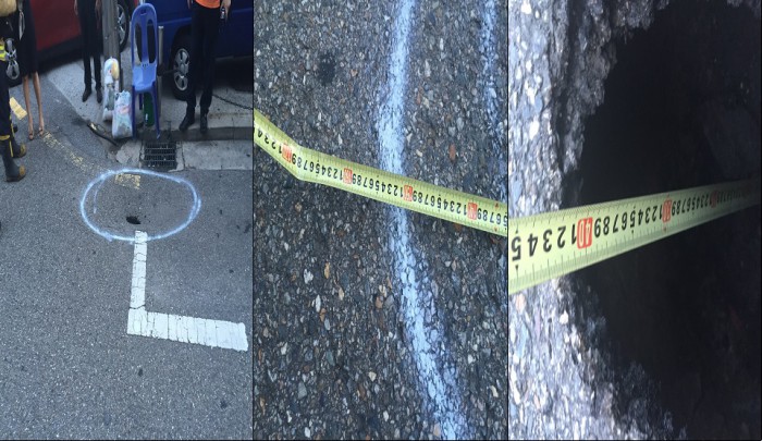 한편, 송파구청은 전날 4차선 도로에서 발생한 가로 1m, 세로1.2m, 깊이 1.4m의 땅꺼짐에 대해서는 "하수 박스와 하수관 사이가 벌어져 그쪽으로 토사가 쏠리면서 지반이 내려 앉은 것"이라며 "싱크홀과는 다르다"고 주장했다.송파구 삼전동 아스팔트 땅꺼짐. <자료제공=송파소방서>