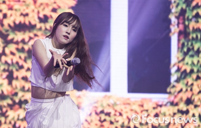 (서울=포커스뉴스) 11일 오후 서울 광진구 예스24 라이브홀에서 열린 걸그룹 여자친구의 첫번째 정규앨범 'LOL' 발표 쇼케이스에 참여한 멤버 유주가 무대를 선보이고 있다.