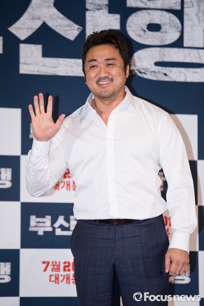 (서울=포커스뉴스) 12일 오후 서울 광진구 롯데시네마 건대입구점에서 열린 영화 '부산행' 언론시사회에 참석한 배우 마동석이 포토타임을 갖고 있다.