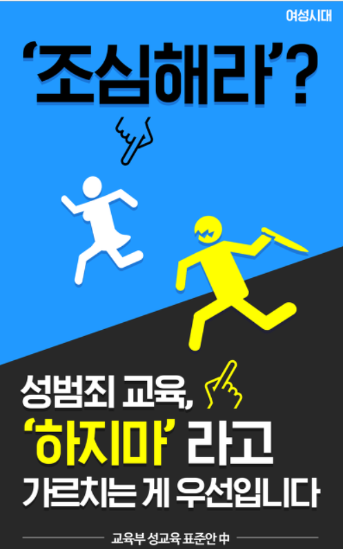 문제가 된 광고는 "여성은 잠재적 범죄유발자가 아닙니다" "조심해라? 성범죄 교육, '하지마'라고 가르치는 게 우선입니다" 등의 시안을 포함하고 있다.