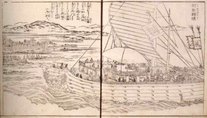 이번 상호 협업을 통해 세 기관은 조선통신사선 연구와 활용방안 등에 필요한 정보와 자료를 교류함으로써 기관별 전문성을 높이고, 복원된 조선통신사선을 활용한 조선통신사 축제와 통신사선이 17~19세기에 실제 다녔던 항로의 재현항해 등 다양한 프로그램을 기획하여 한일 해양문화유산의 활용사업을 확대해 나갈 계획이다.국립해양박물관이 소장하고 있는 '근강명소도회 조선빙사'에 나온 조선통신사선의 모습.<사진제공=문화재청>