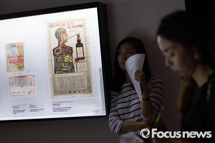 (서울=포커스뉴스) 28일 오후 서울 용산구 국립한글박물관에서 열린 기획특별전 '광고 언어의 힘' 언론 간담회에서 참석자들이 다양한 광고를 살펴보고 있다. 개화기부터 현재까지 광고의 130여년 역사를 우리말과 우리글의 관점에서 풀어낸 이 기획특별전은 7월 28일부터 11월 27일까지 열린다.