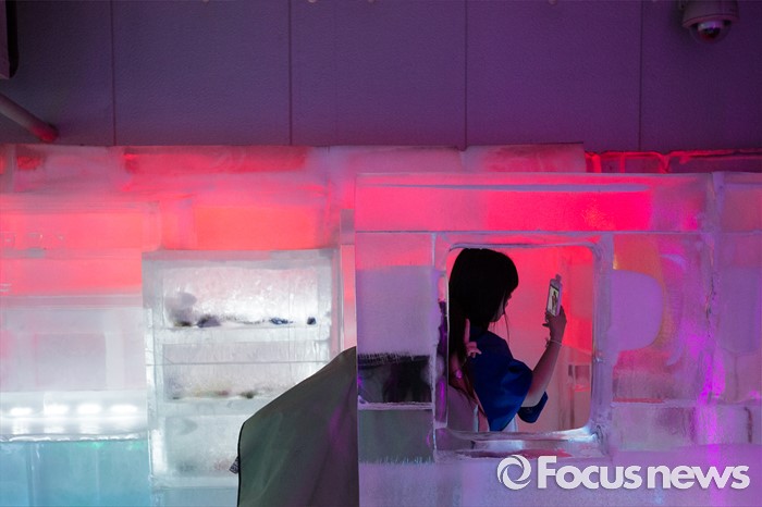 (서울=포커스뉴스) 3일 오후 서울 마포구 아이스뮤지엄을 찾은 관람객들이 사진을 찍고 있다.