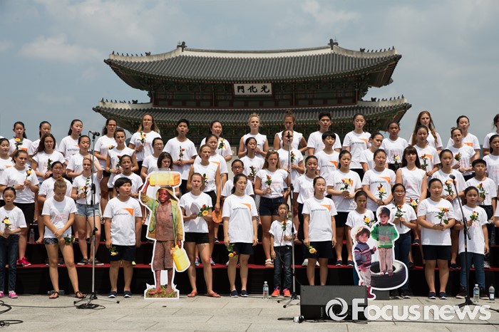 (서울=포커스뉴스) 8일 오전 서울 종로구 광화문광장에서 열린 '월드비전 2016세계어린이합창제' 런치콘서트에서 헝가리, 필리핀 어린이 합창단과 한국 월드비전 합창단이 노래를 부르고 있다. 올해로 6회를 맞은 '월드비전 2016 세계어린이합창제'는 'Song of Peace-평화의 노래'라는 주제로 8월 6일부터 11일까지 예술의 전당에서 열린다.