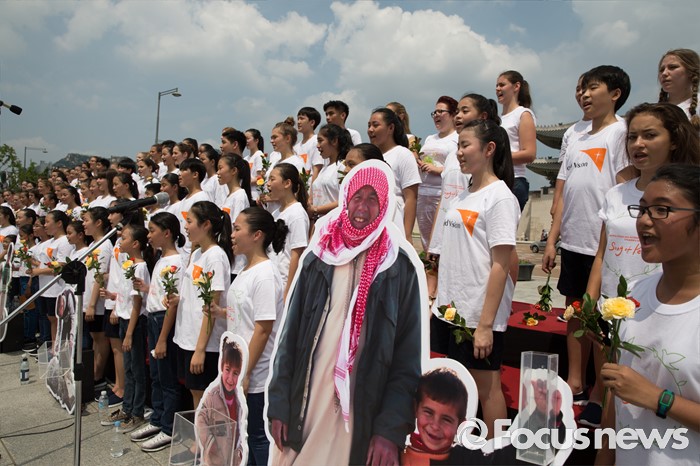 (서울=포커스뉴스) 8일 오전 서울 종로구 광화문광장에서 열린 '월드비전 2016세계어린이합창제' 런치콘서트에서 헝가리, 필리핀 어린이 합창단과 한국 월드비전 합창단이 노래를 부르고 있다. 올해로 6회를 맞은 '월드비전 2016 세계어린이합창제'는 'Song of Peace-평화의 노래'라는 주제로 8월 6일부터 11일까지 예술의 전당에서 열린다.