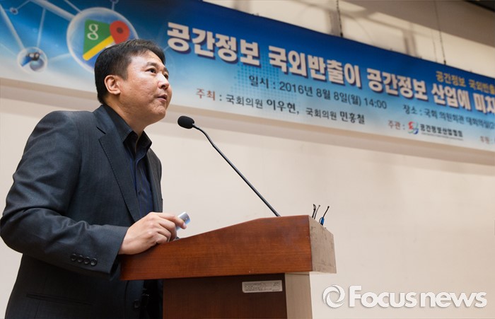 (서울=포커스뉴스) 권범준 구글 지도 프로덕트 매니저가 8일 오후 서울 여의도 국회 의원회관에서 열린 공간정보 국외 반출 관련 정책 토론회에 참석해 공간정보활용을 통한 혁신이란 주제로 발표하고 있다.