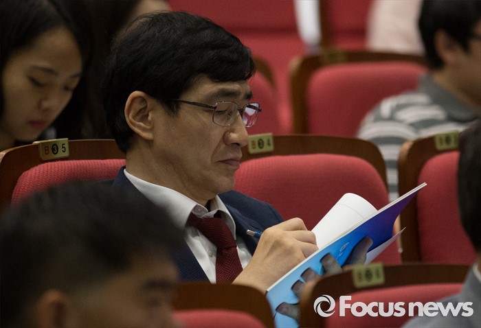 (서울=포커스뉴스) 8일 오후 서울 여의도 국회 의원회관에서 열린 공간정보 국외 반출 관련 정책 토론회에서 한 참석자가 메모하고 있다.